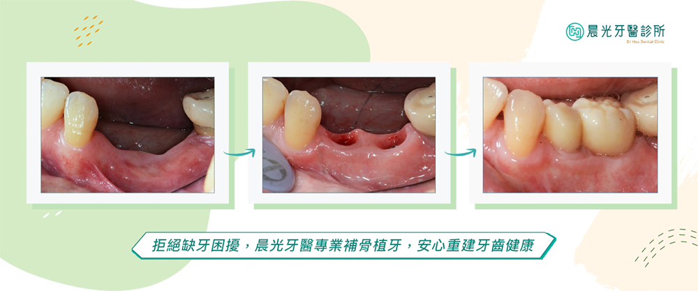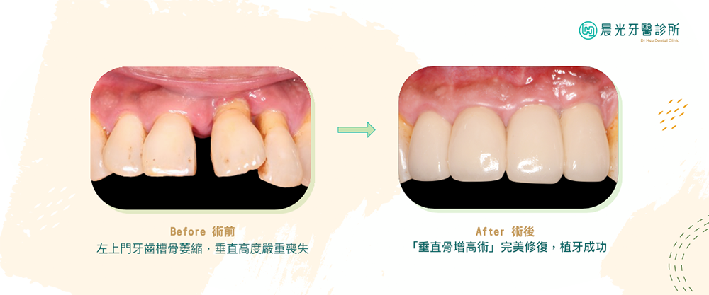 如果這類患者未即時處理,骨質會持續流失,導致牙冠比例不佳、植牙困難。然⽽,透過垂直骨增⾼術,可以有效補骨,讓患者重新獲得植牙的機會。